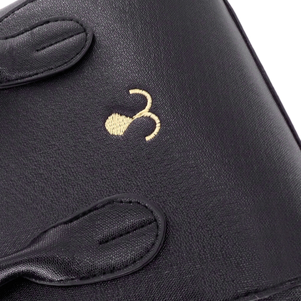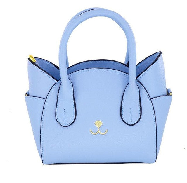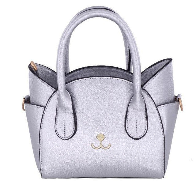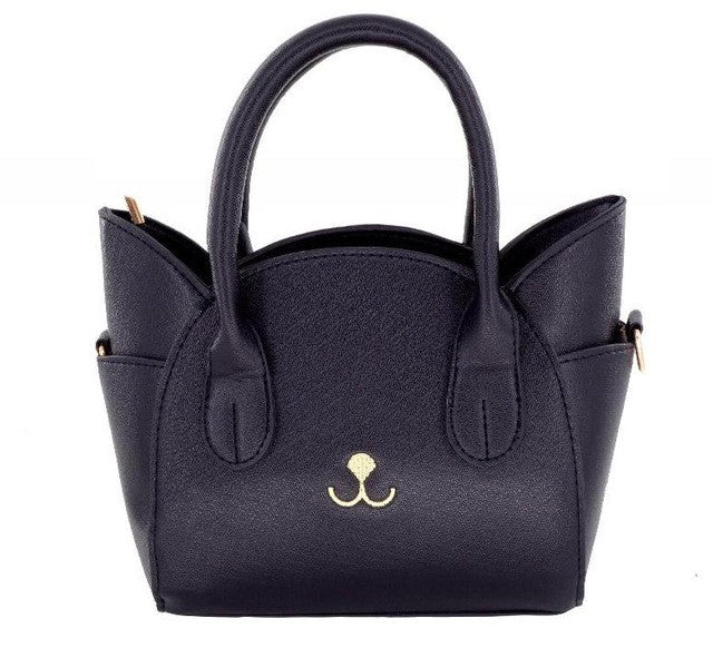 We love the style of this mini satchel bag - especially the cat ears! Fits everything you could need - phone, wallet.. cat treats - you know just the essentials! Includes end pockets and a zippered closure, stitched on cat nose and mouth details and gold hardware. Features carrying handles and a shoulder strap.