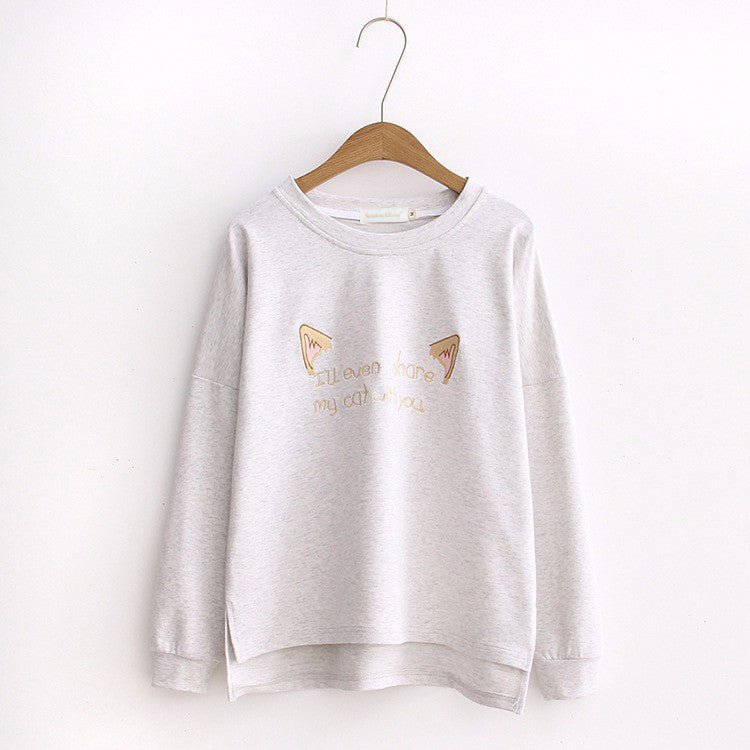 These light weight pullovers are so cute - they're available in 4 different colors and each are embroidered with cat ears and text saying " I'll even share my cat with you" which is a pretty loaded statement if you ask us! You know you have a pretty special person to consider sharing your fur babies with them!