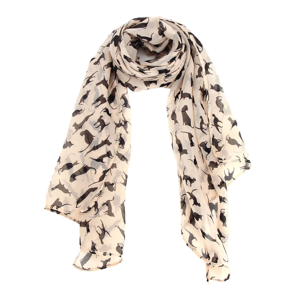 Wear this scarf wrapped around your bag handles or your neck for an instant pop to your outfit! We love of soft and lightweight it is and printed with our favorite - cats!